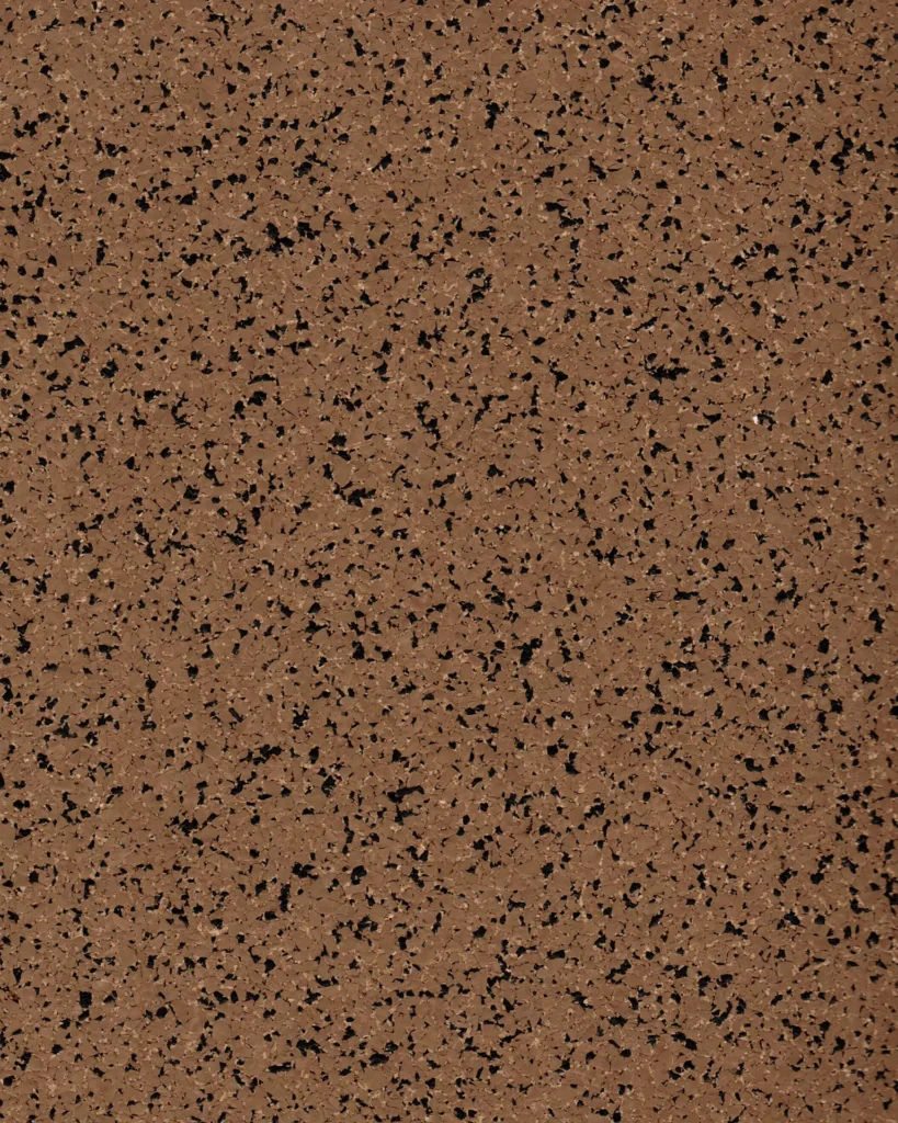 “Stardust” cork infused rubber flooring for Known Collection blends the durability of recycled rubber with the sustainability of naturally harvested cork.