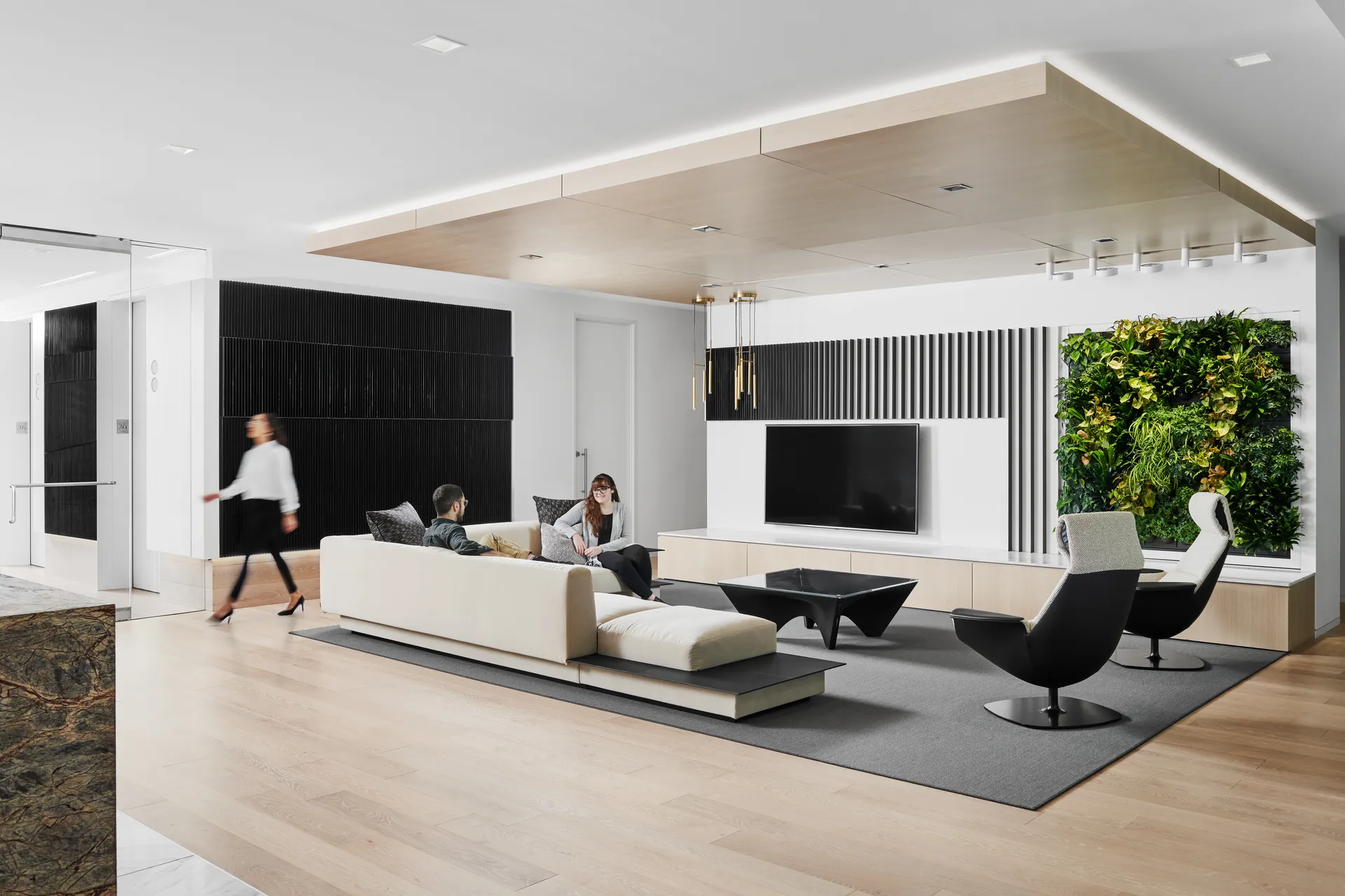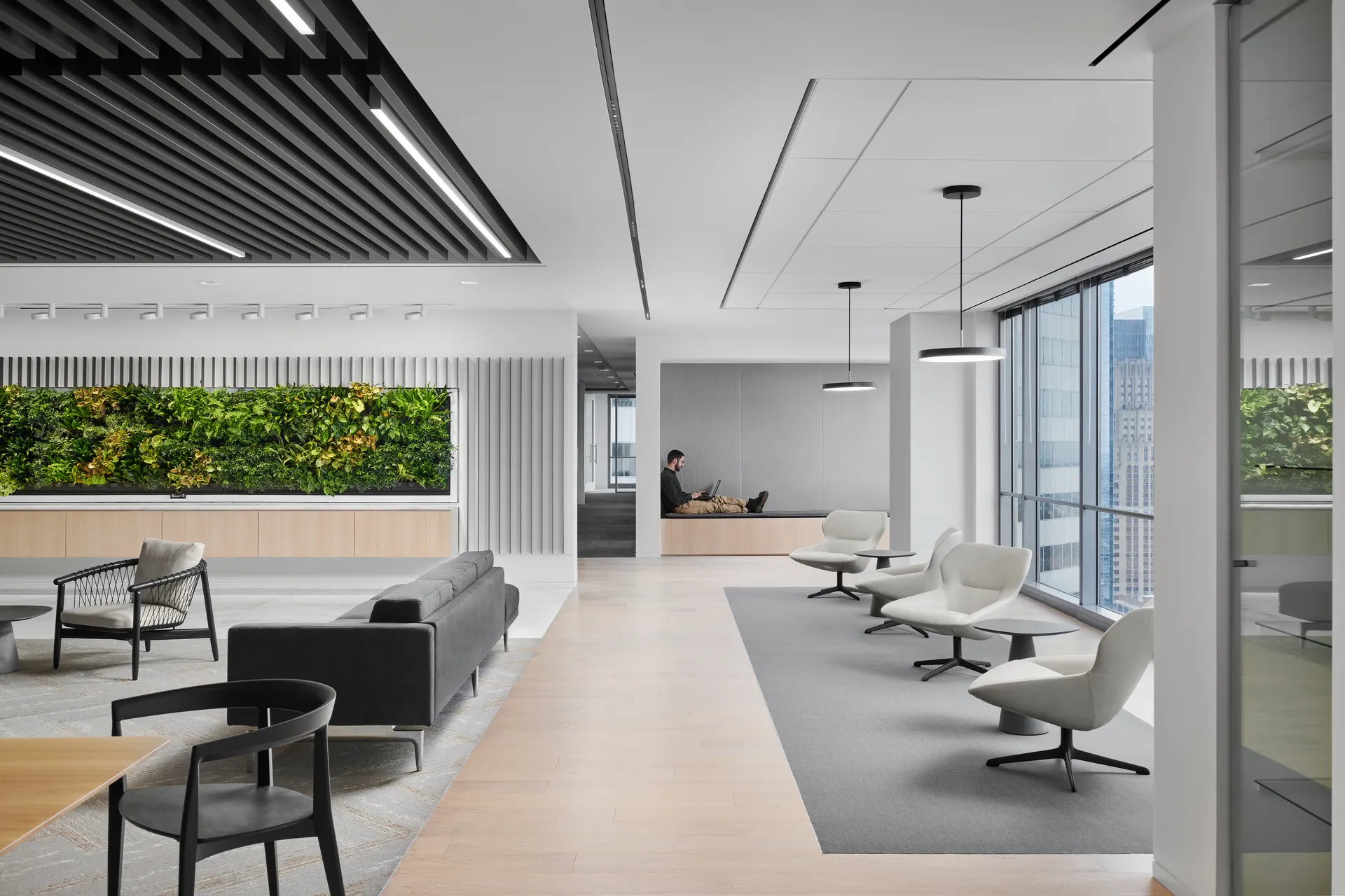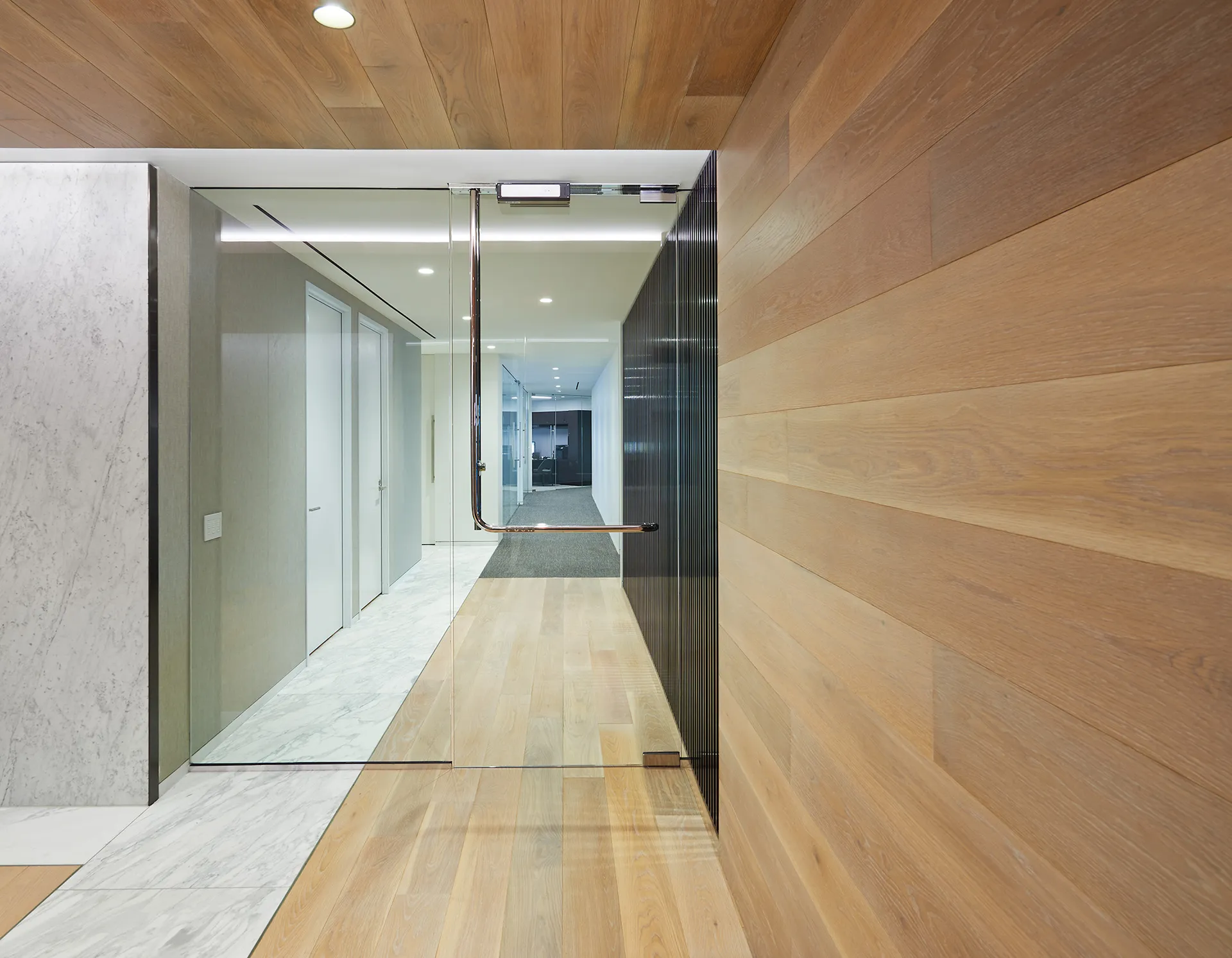 PDR Architecture, a leading design firm based in Houston, selected Known Collection’s Naturals stain for an ongoing series of projects for an international energy company’s offices across North America. To achieve the exact tone required, European white oak was custom stained at our U.S. manufacturing facility, ensuring precision and consistency. The material was applied to both walls and floors, creating a unified design language that balances sophistication with durability.